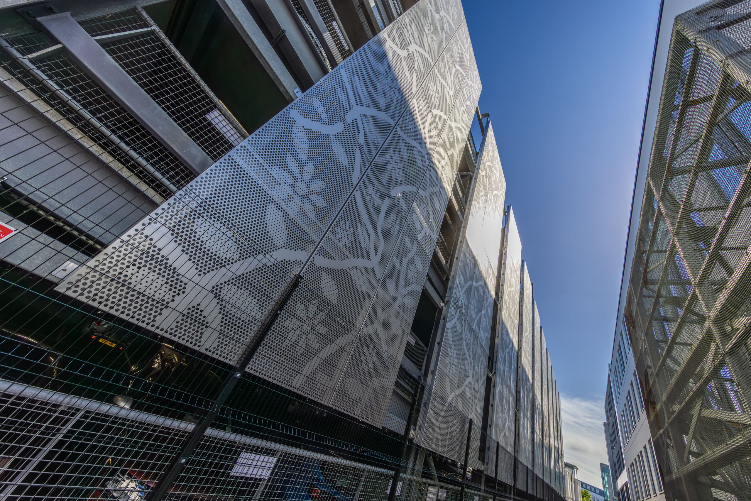 Project features and challenges: Design for the perforated flower pattern was received in CAD format and then the BTS design and engineering team had to ensure manufacturability, new tooling for our Salvagnini S4 punch was ordered in to suit. BTS had to sequentially pack also to ensure smooth install on site.