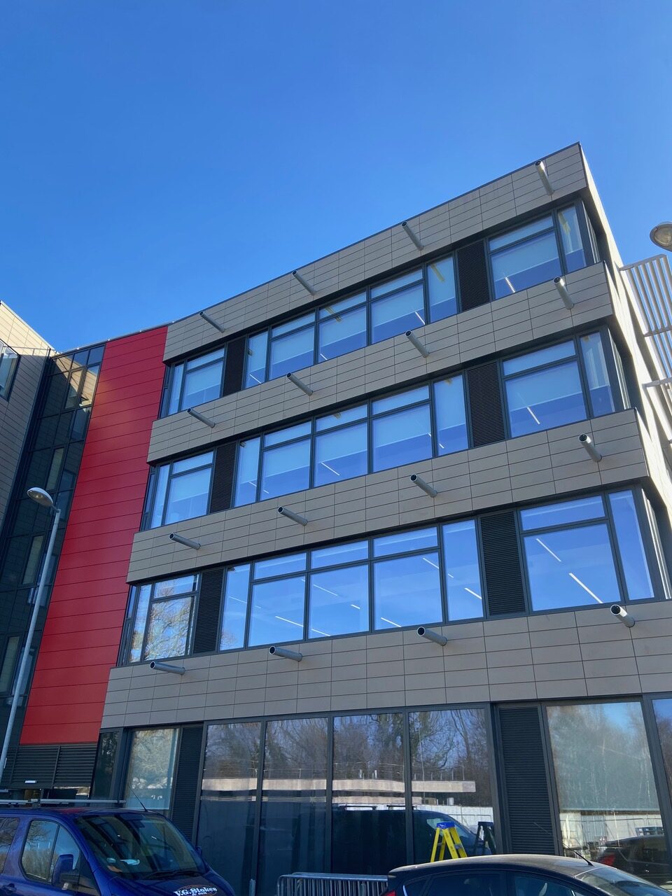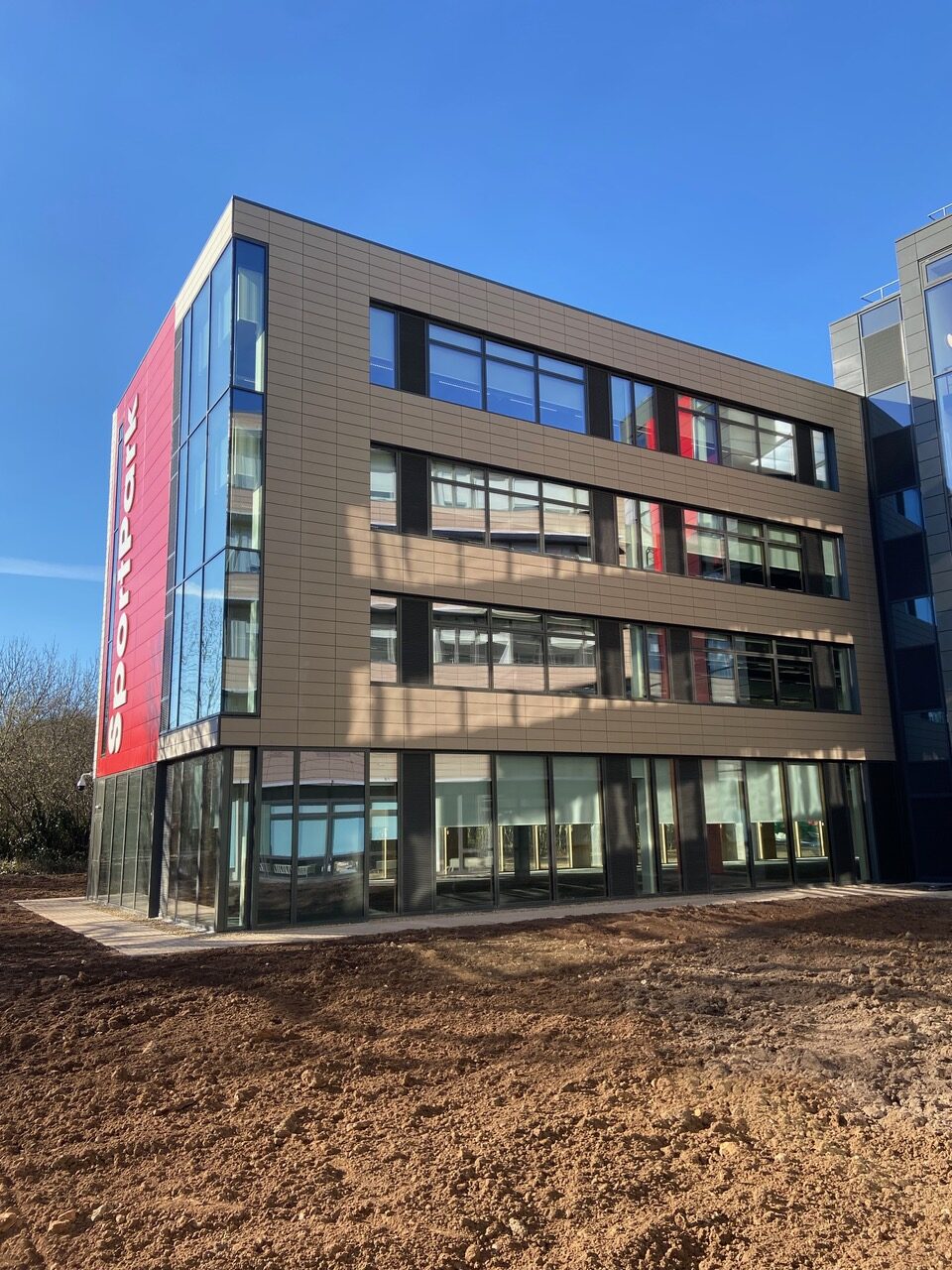 Project features and challenges: SportPark, saw BTS supply Vantage®️ IP Rainscreen panels in PPC RAL 7022 and RAL 3000.