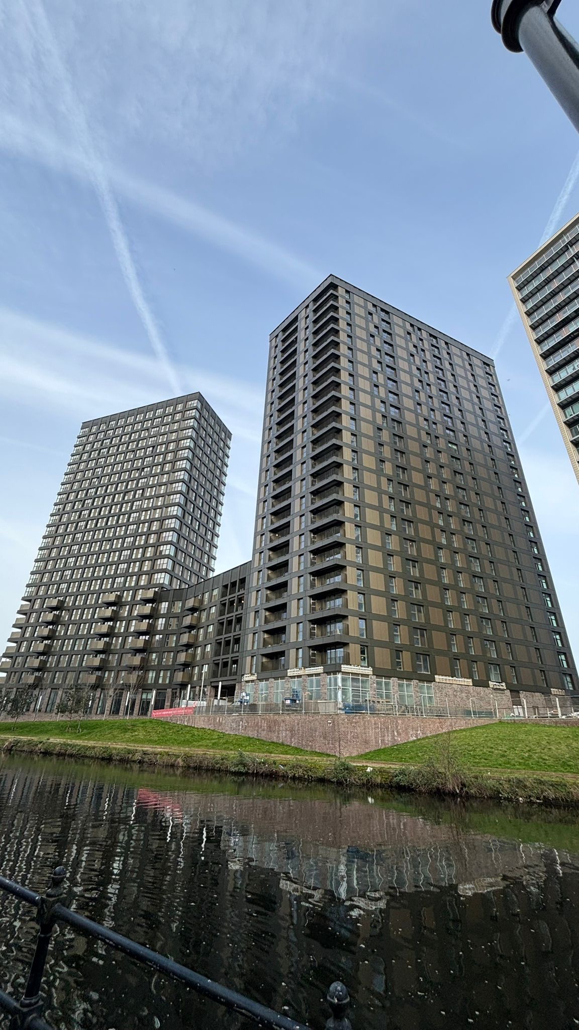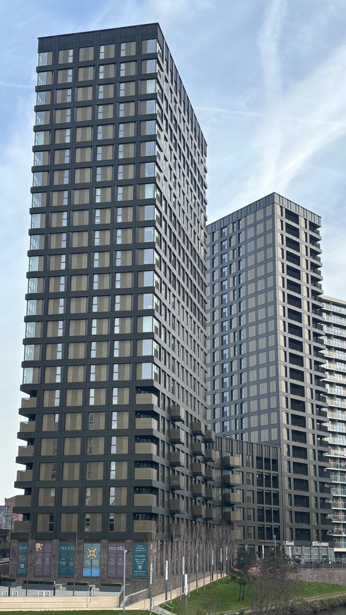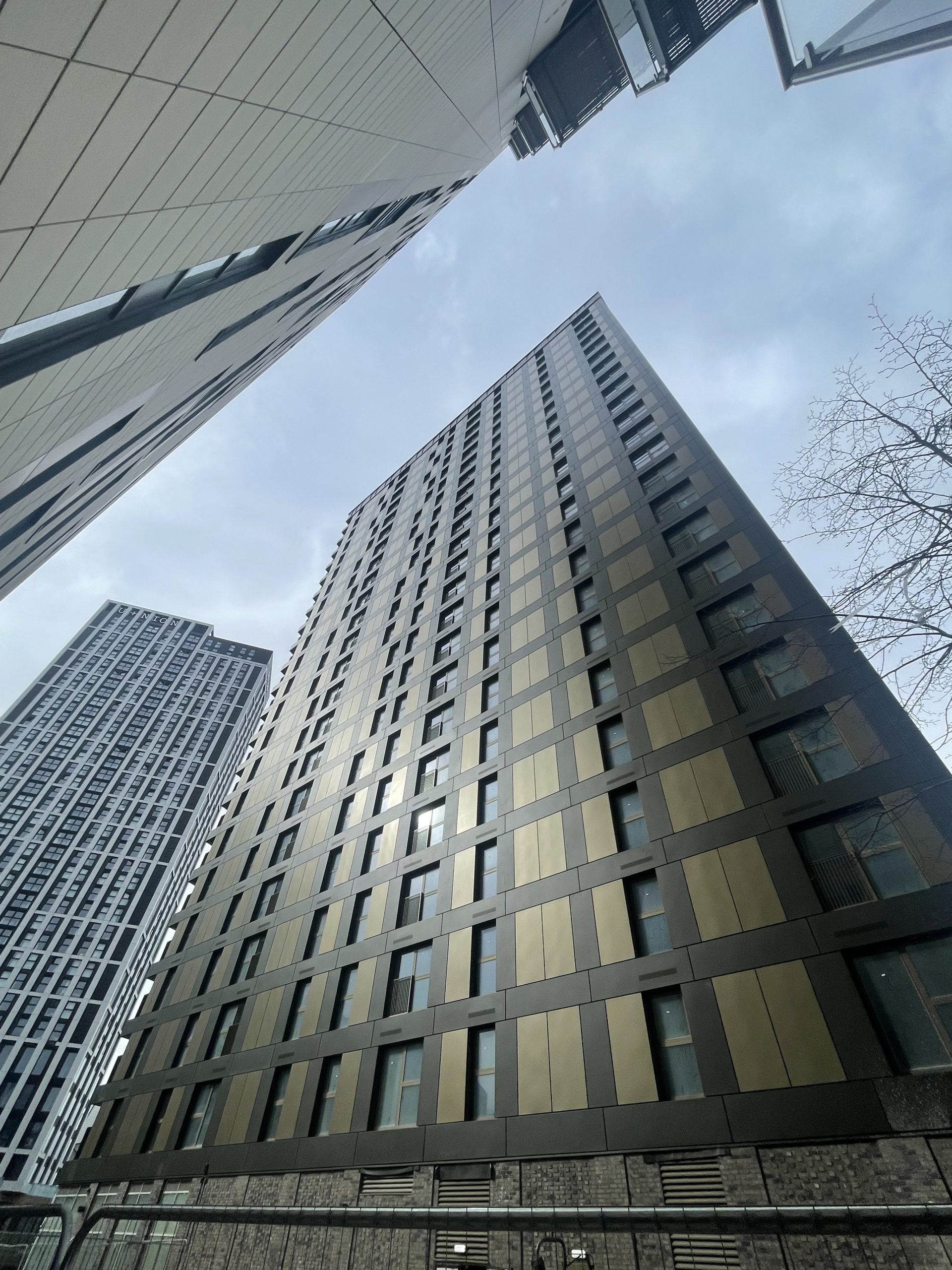 Vantage DF®️ was chosen to complement the colour scheme used on the neighbouring Salford New Bailey C1, helping C2 blend seamlessly while still appearing fresh. Installation was completed from mast climbers across four elevations, phased by elevation and floor bands up to level 23.